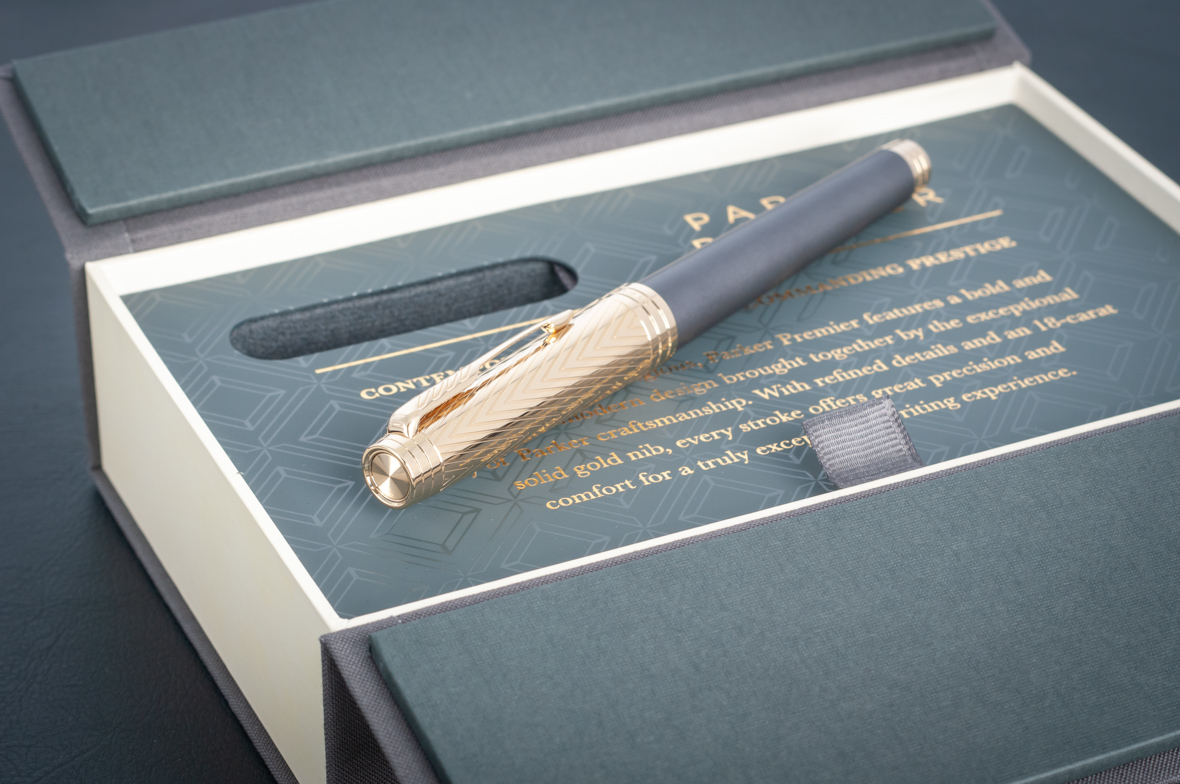 Перьевая ручка Parker Premier Storm Grey GT от официального дилера Parker в Перми. Вы можете дополнительно заказать гравировку, которая подчеркнет Вашу оригинальность и придаст памятность статусному подарку. Все ручки Паркер поставляются в фирменном футляре.