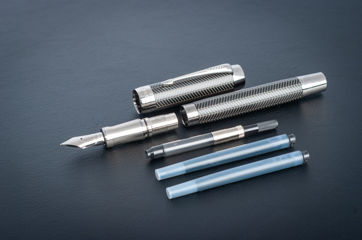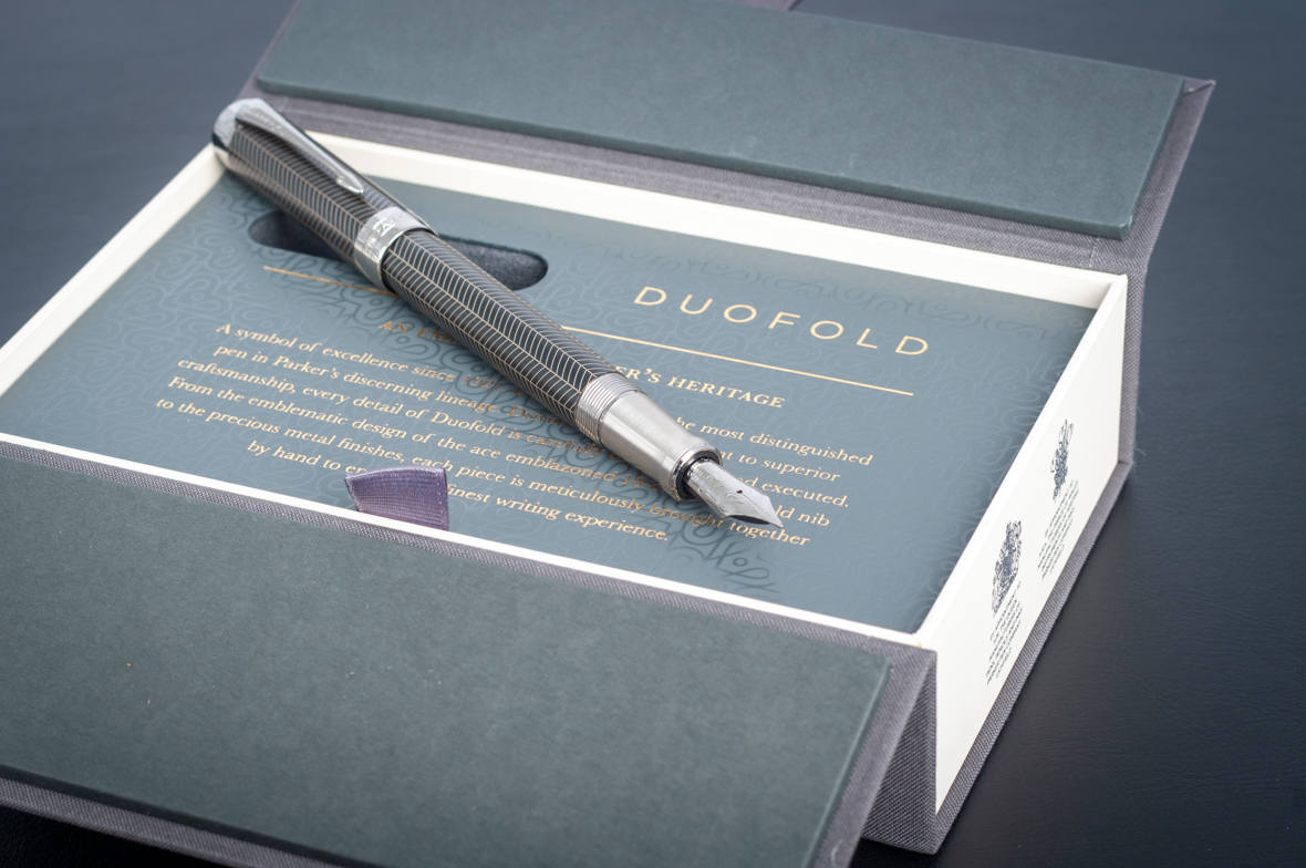 Перьевая ручка Parker Duofold Prestige Centennial Black Chevron CT от официального дилера Parker в Перми. Вы можете дополнительно заказать гравировку, которая подчеркнет Вашу оригинальность и придаст памятность статусному подарку. Все ручки Паркер поставляются в фирменном футляре.